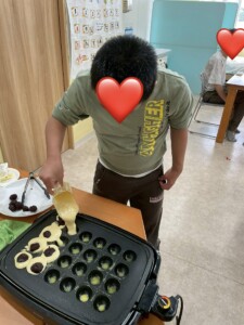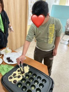 生地を流し込んで・まんまるあんこを入れて・クルクル。