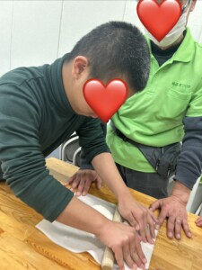 みんなで、混ぜて・こねて・たたいて・踏んで・のばして・切って。