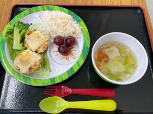 10月のメニューは、【チーズつくね・野菜スープ・ぶどう】です!