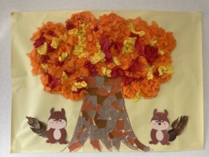 リスのしっぽには、拾ってきた落ち葉を使いました🍂